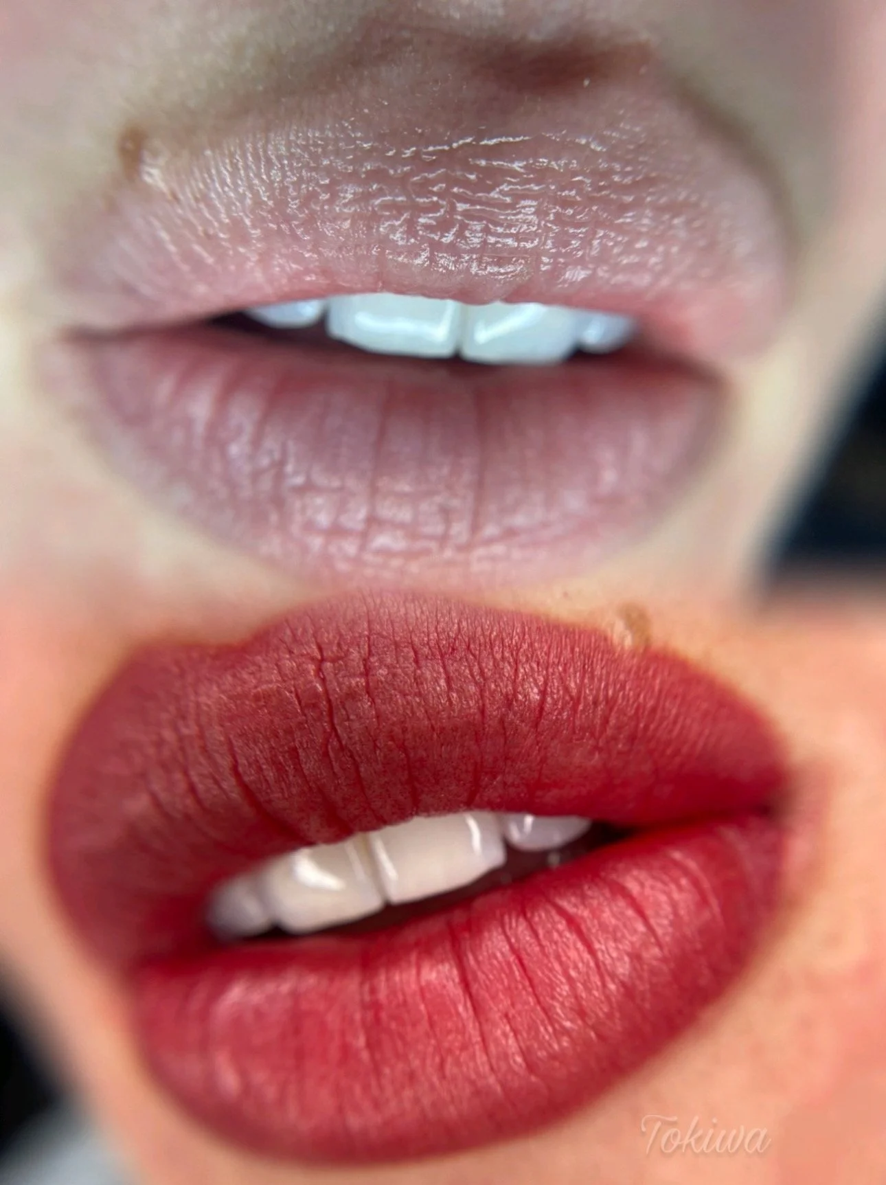 Come with clean lips—free from all lipstick, lip gloss, or lip balm—so the pigment settles smoothly for optimal, long-lasting results. Hydrated lips are essential for the best outcome.
